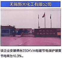 企业安装两台250KVA电磁节电保护装置,节电率达10.3%。
