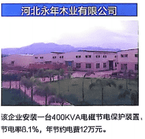 企业安装400KVA电磁节电保护装置,节电率达8.1%,年省电费12万元。