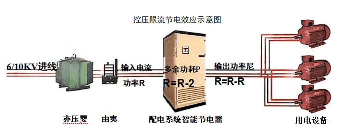 根据欧姆定律(I=U/R), 在电阻值不变的情况下,电流会随着电压变化而变化。配电系统智能节电器, 在不降低设备功效的情况下,依据负载的变化智能化地减少冗余电流,从而降低能耗,